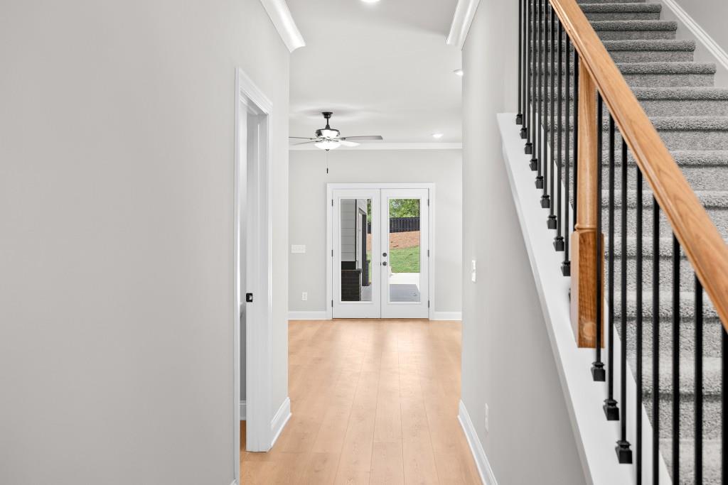 Coming from the Buford Area: 985 North to Exit 12 (Spout Springs Road) - Turn Left. Cross over Atlanta Hwy and Take First Right in Traffic Circle onto Mitchell Street. Turn Left at First Stop Sign onto Main Street. Turn Left at First Stop Sign onto Gainesville Street. Rose Harbor is on the Right at corner of Gainesville Street & Lights Ferry.