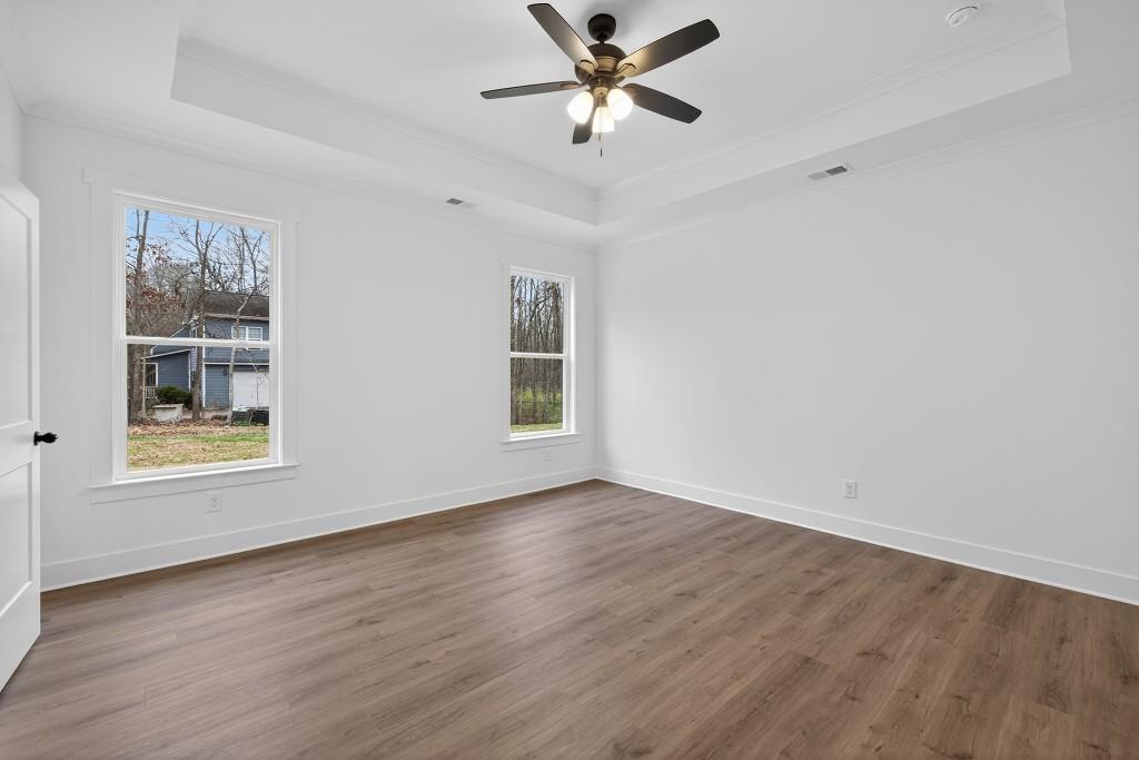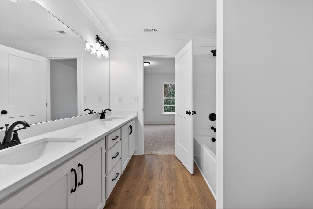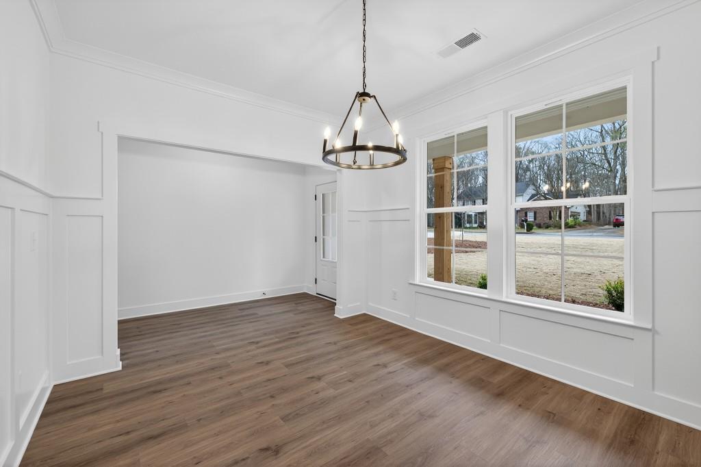 Welcome to this charming Craftsman-style home, located in sought after North Oconee High School District – beautifully set with a serene wooded backdrop. This Quick Move-in home showcases exceptional curb appeal with fresh landscaping, board-and-batten siding, and an inviting covered front porch with cedar columns. An extended driveway and three car garage provide both convenience and a clean, polished exterior presentation. Step inside to a bright, modern entryway with neutral finishes that set the tone for the home’s refined design. The formal dining room impresses with elegant wainscoting, eye-catching LVP flooring, and large windows that fill the space with natural light – perfect for hosting gatherings both intimate and grand. The heart of the home is the open-concept chef’s kitchen, thoughtfully designed with an oversized contrasting center island, farmhouse sink, pendant lighting, quartz-style countertops, abundant modern cabinetry, and a sleek contemporary range hood. With generous workspace and seamless flow into the main living area, this kitchen is ideal for everyday living and entertaining alike. Adjacent, the spacious family room features coffered ceilings, a ceiling fan, and a stylish electric linear fireplace, all bathed in natural light from expansive windows. Retreat to the generous primary suite, offering a trey ceiling, ceiling fan, large windows, and a versatile layout designed for comfort. The serene spa-inspired primary ensuite bathroom boasts dual vanities, sleek cabinetry, designer lighting, tiled floors, and a stunning frameless glass walk-in shower with a bench & niche. A large walk-in closet completes this luxurious retreat. A main-level powder room and a walk-in laundry room add practicality and convenience to the main floor. Secondary bedrooms are both bright and spacious, featuring neutral finishes, plush carpet, and flexible layouts to suit a variety of needs. Well-appointed secondary bathrooms include modern vanities, contemporary fixtures, durable flooring, and tub/shower combinations. Outdoor living shines with a covered rear porch, complete with a ceiling fan – ideal for relaxing or entertaining year-round. The expansive backyard offers privacy, wooded views, and ample room to customize, creating a peaceful outdoor escape. With its thoughtful layout, modern finishes, and tranquil setting, this beautifully designed Craftsman home offers the perfect blend of style, comfort, and functionality. Contact us TODAY to learn about our Rates Starting as Low as 1.99%* with use of Seller’s Preferred Lender!